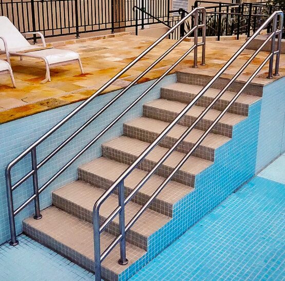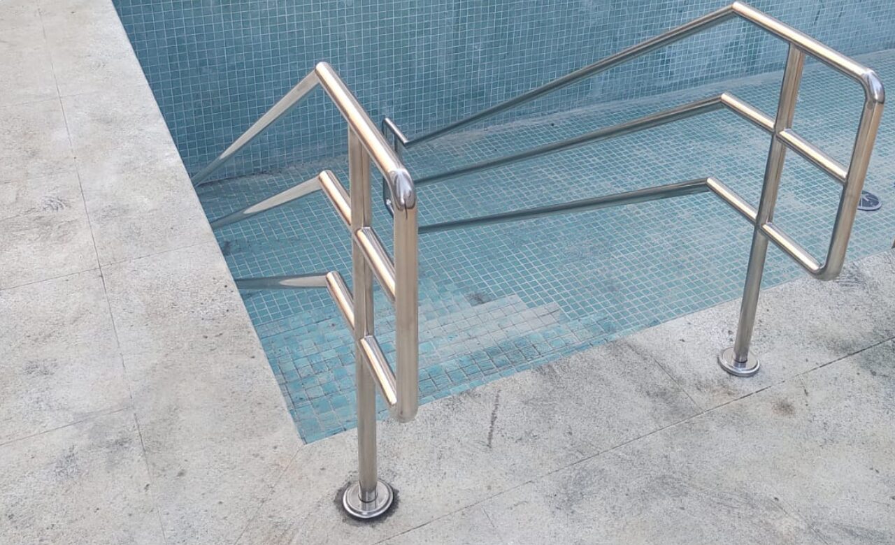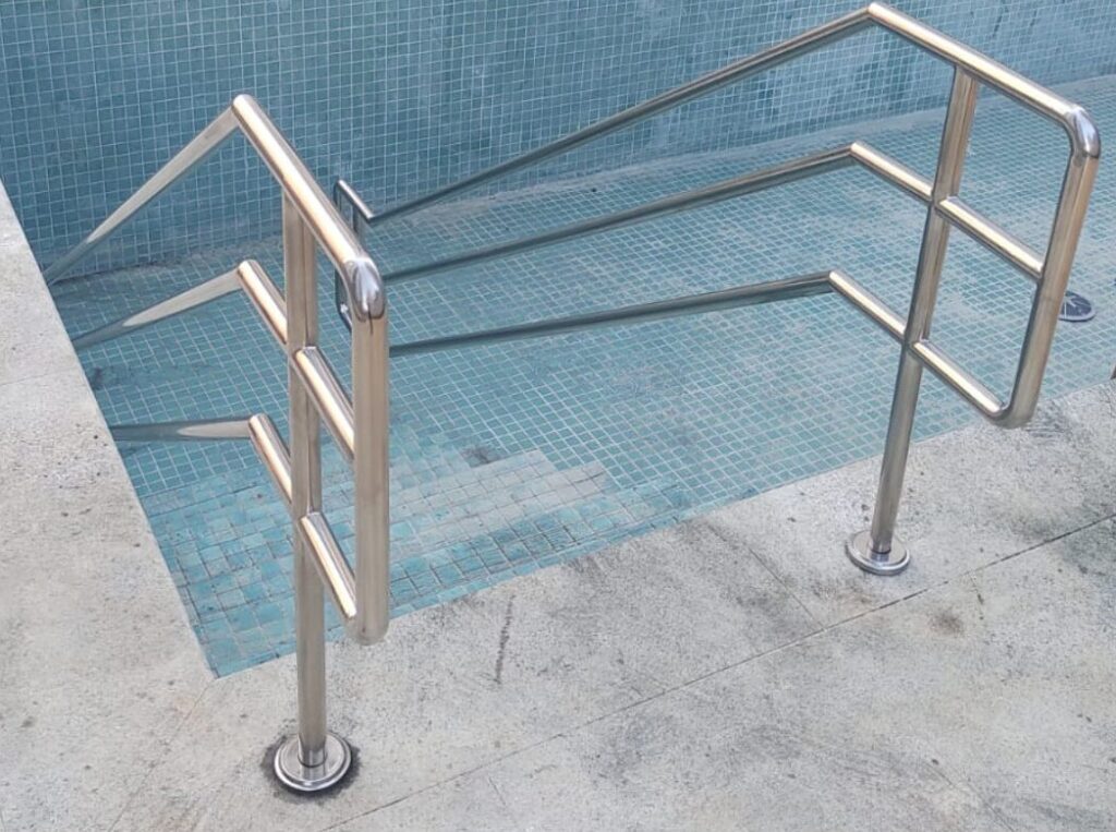 Além disso, o aço inox permite a fabricação de estruturas robustas e bem dimensionadas, que atendem às exigências das normas técnicas de segurança e acessibilidade.